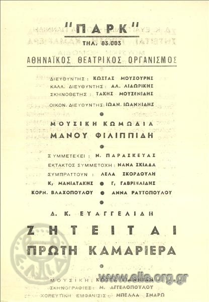 Θεατρικός συγγραφέας: Δ. Ευαγγελίδης.