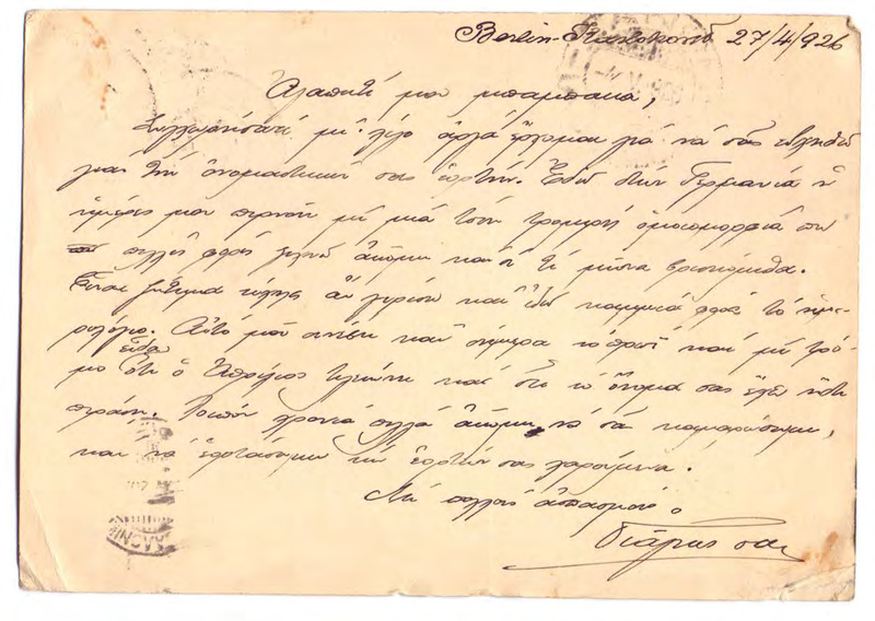 Card Postal προς Ευαγγελία Κωνσταντινίδου 27/04/1926