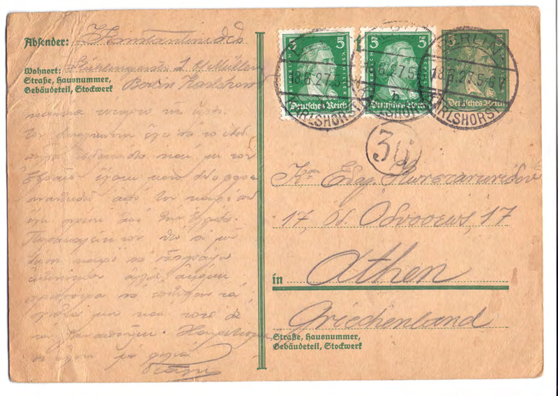 Card Postal προς Ευαγγελία Κωνσταντινίδου 17/07/1927