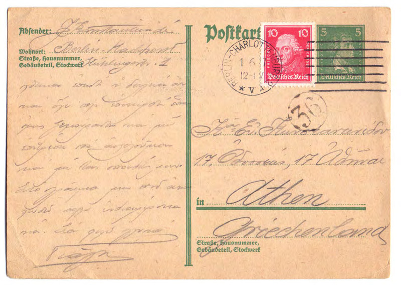 Card Postal προς Ευαγγελία Κωνσταντινίδου 30/05/1927