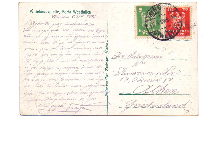 Card Postal προς Ευαγγελία Κωνσταντινίδου 25/08/1926