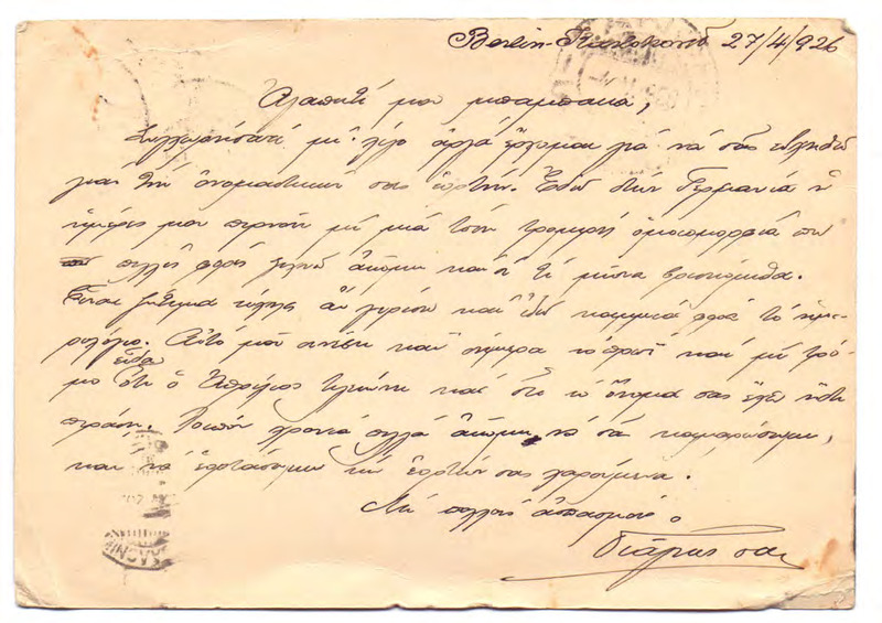 Card Postal προς Γεώργιο Κωνσταντινίδη 27/04/1926