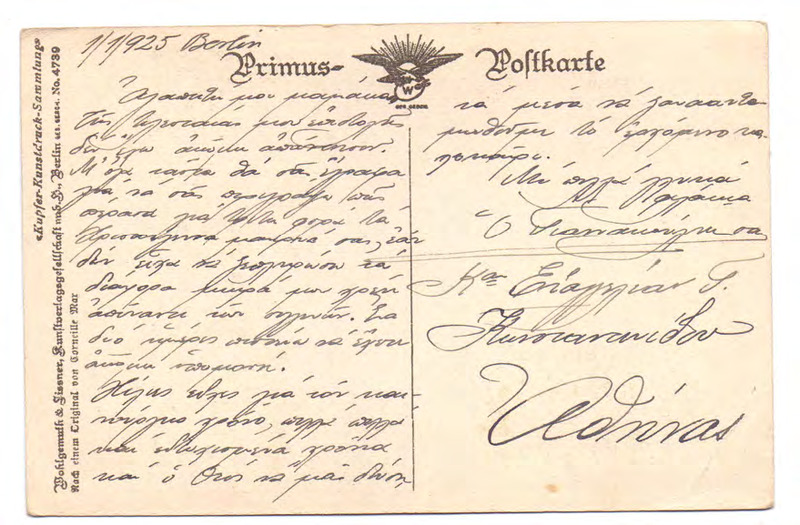 Card Postal προς Ευαγγελία Κωνσταντινίδου 01/01/1925
