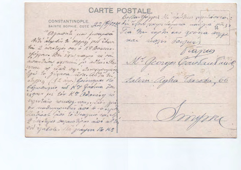 Card Postal προς Γεώργιο Κωνσταντινίδη 22/04/1922
