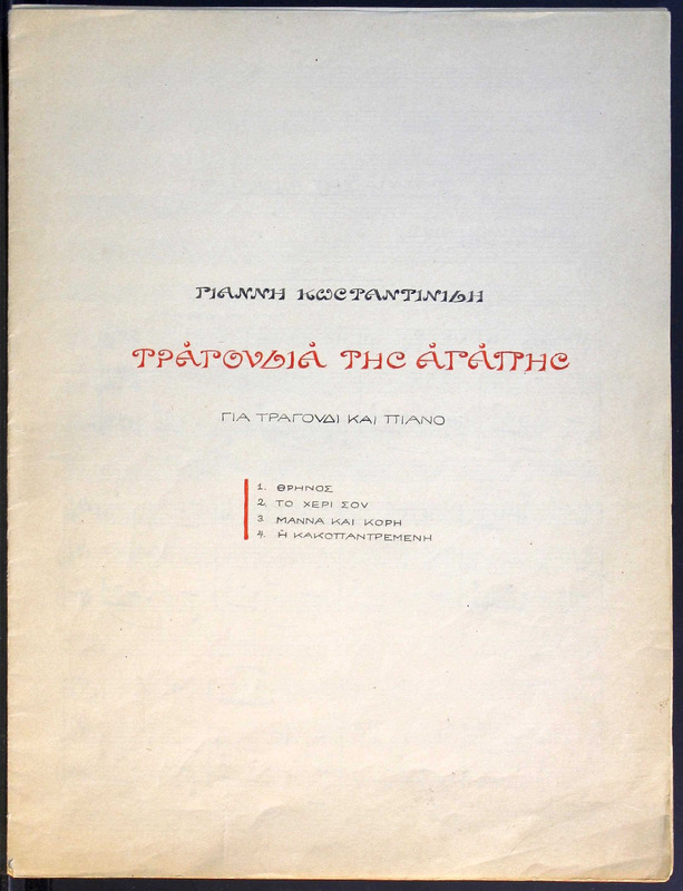 I. Θρήνος (Andante con moto) [«Ο θρήνος τσ' αγαπητικής», ανθολογία δημοτικών γραγουδιών Νικολάου Πολίτη, αρ. 134]